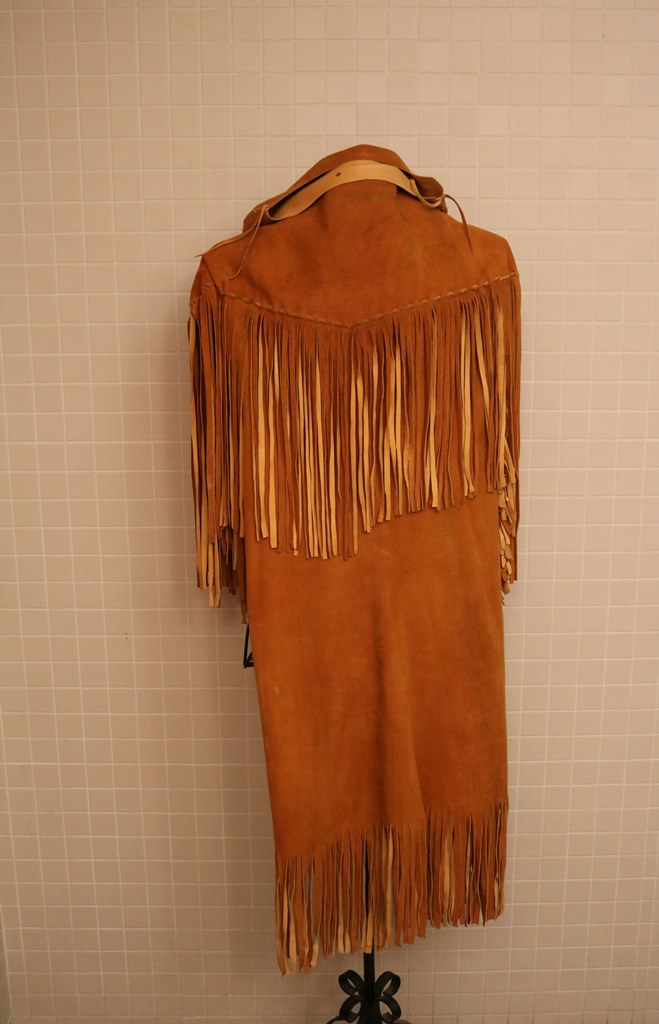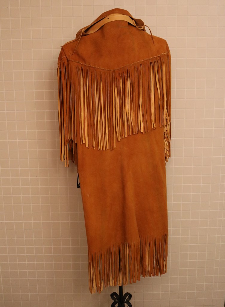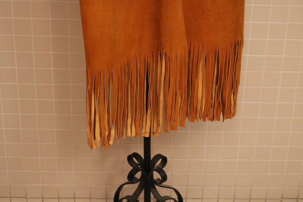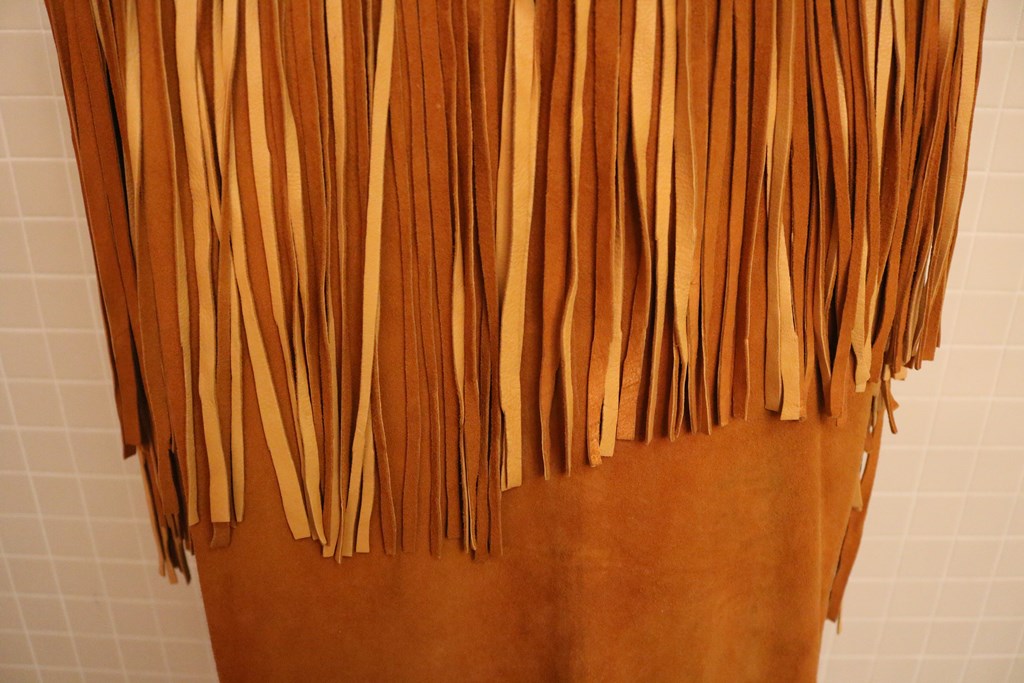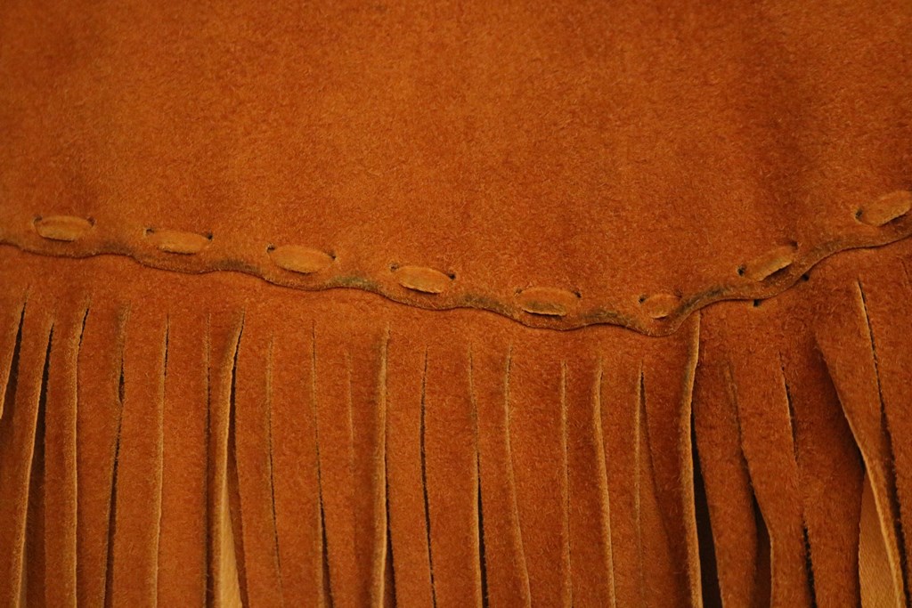 LADY'S NATIVE AMERICAN STYLE MEDIUM BROWN FRINGED SUEDE OR BUCKSKIN DRESS. Pullover styleEstimate $80-120