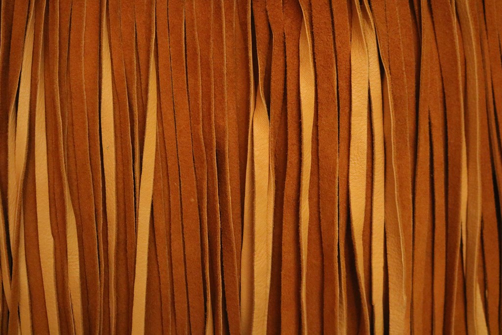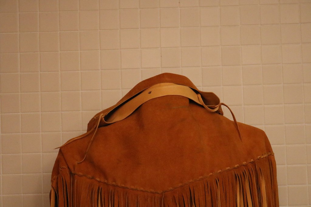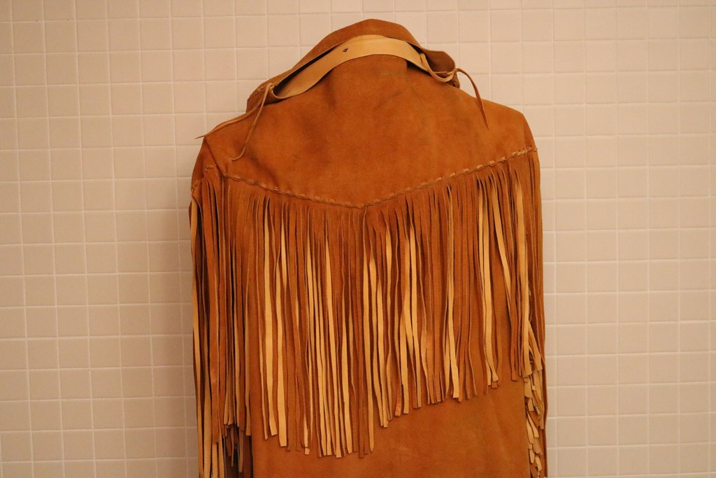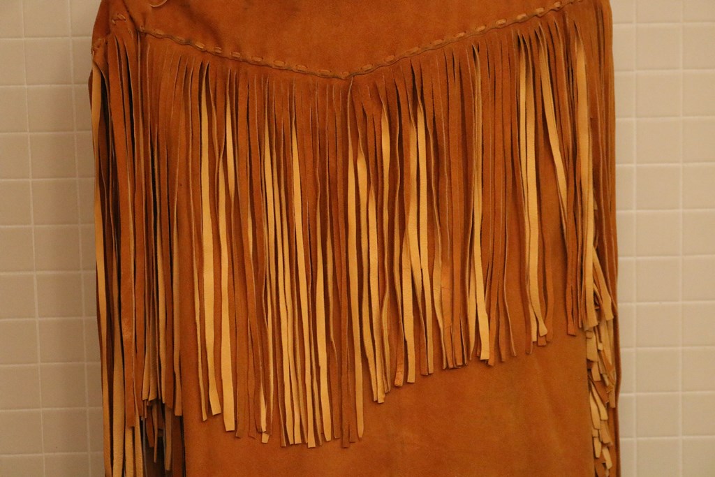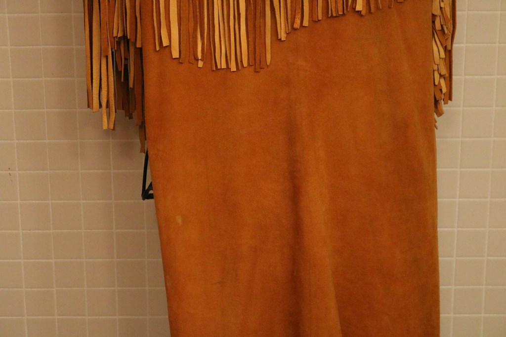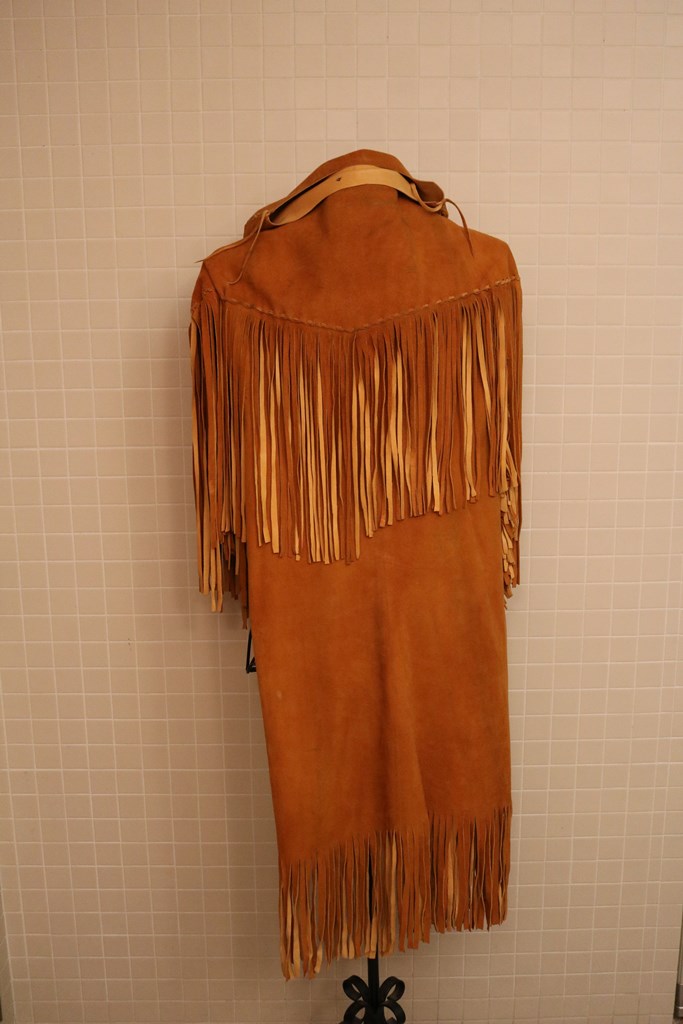 LADY'S NATIVE AMERICAN STYLE MEDIUM BROWN FRINGED SUEDE OR BUCKSKIN DRESS. Pullover styleEstimate $80-120