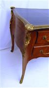 LOUIS XV STYLE FRUITWOOD PARQUETRY FIVE-DRAWER BUREAU PLAT. Top with serpentine rectangular outline projects over five true drawers opposed by five blind drawers; brass banding and mounts; gold-tooled black leather writing surface - H: 30 3/4 in. W: 56 3/4 in. D: 30 in. Estimate $450-600 In good condition. Has a few chips and scratches.