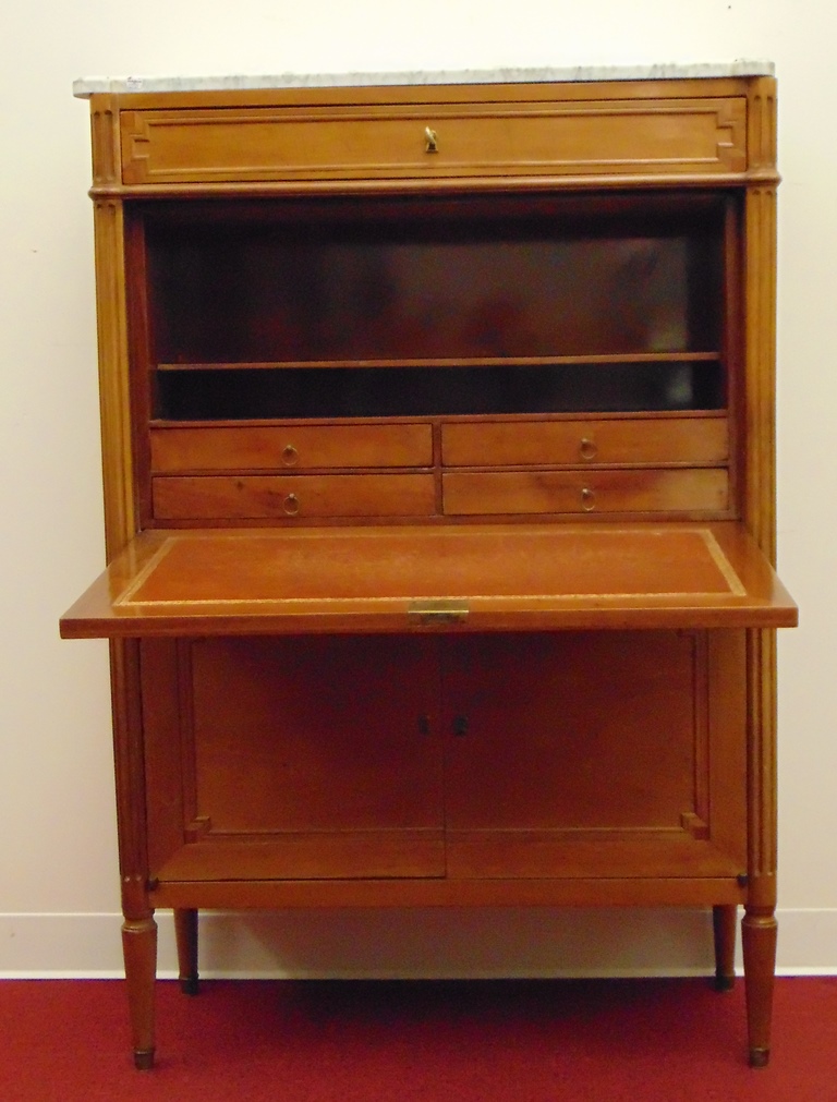 LOUIS XVI STYLE MARBLE-TOP SECRETAIRE A ABATTANT, early-to-mid 19th century. - H: 52 1/4 in.; W: 35 1/2 in.; D; 14 in.Estimate $1,000-1,500