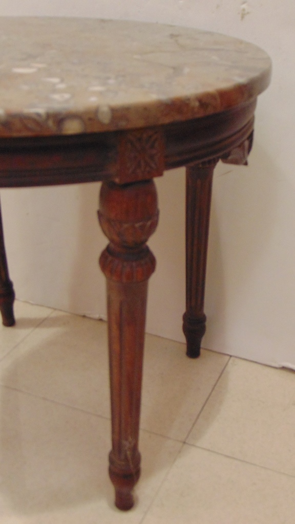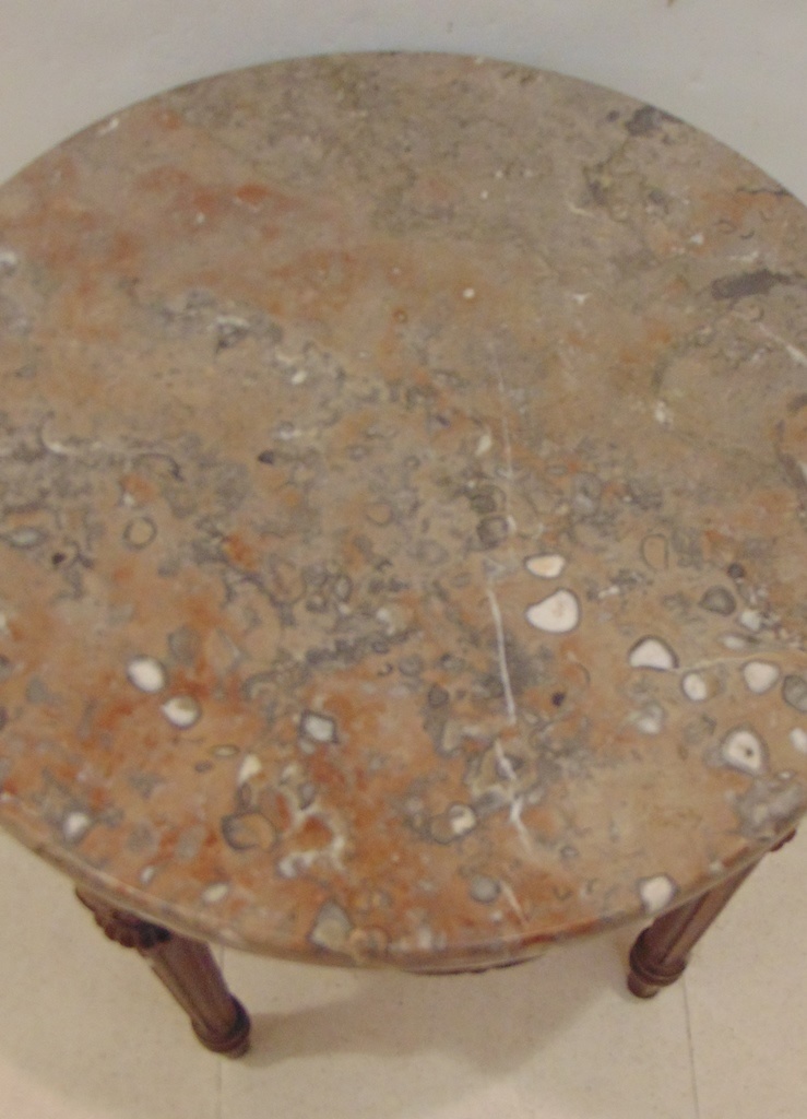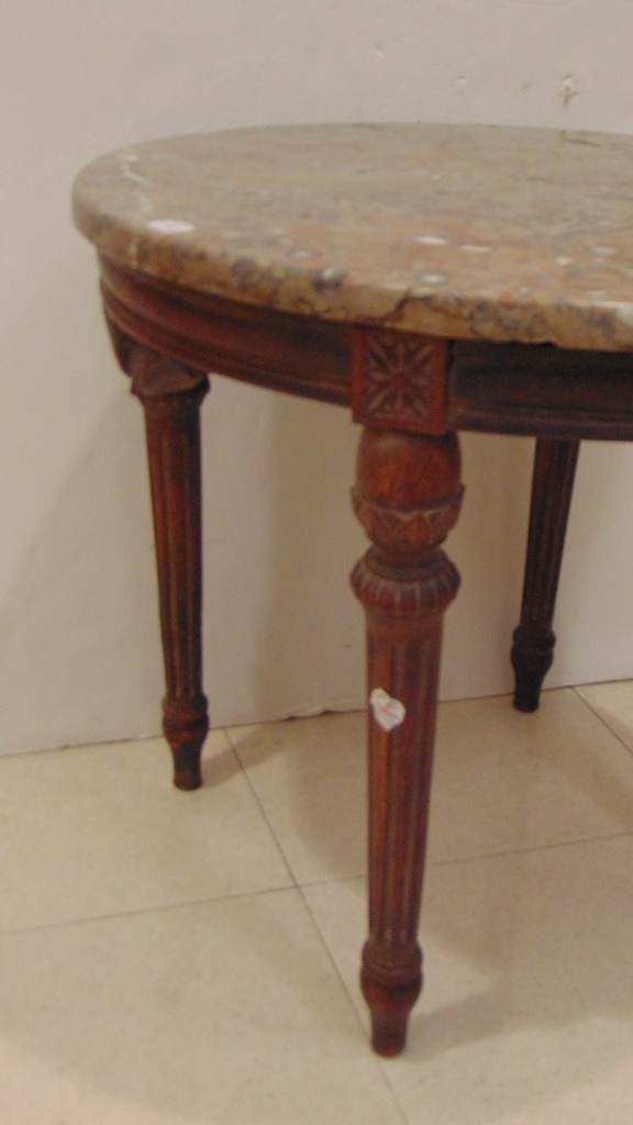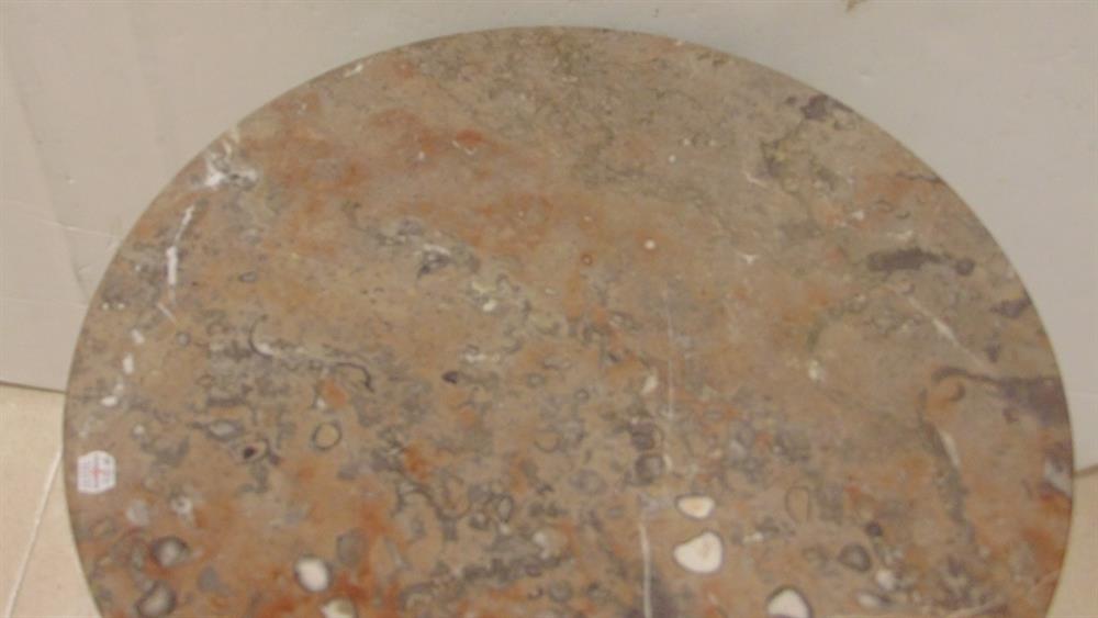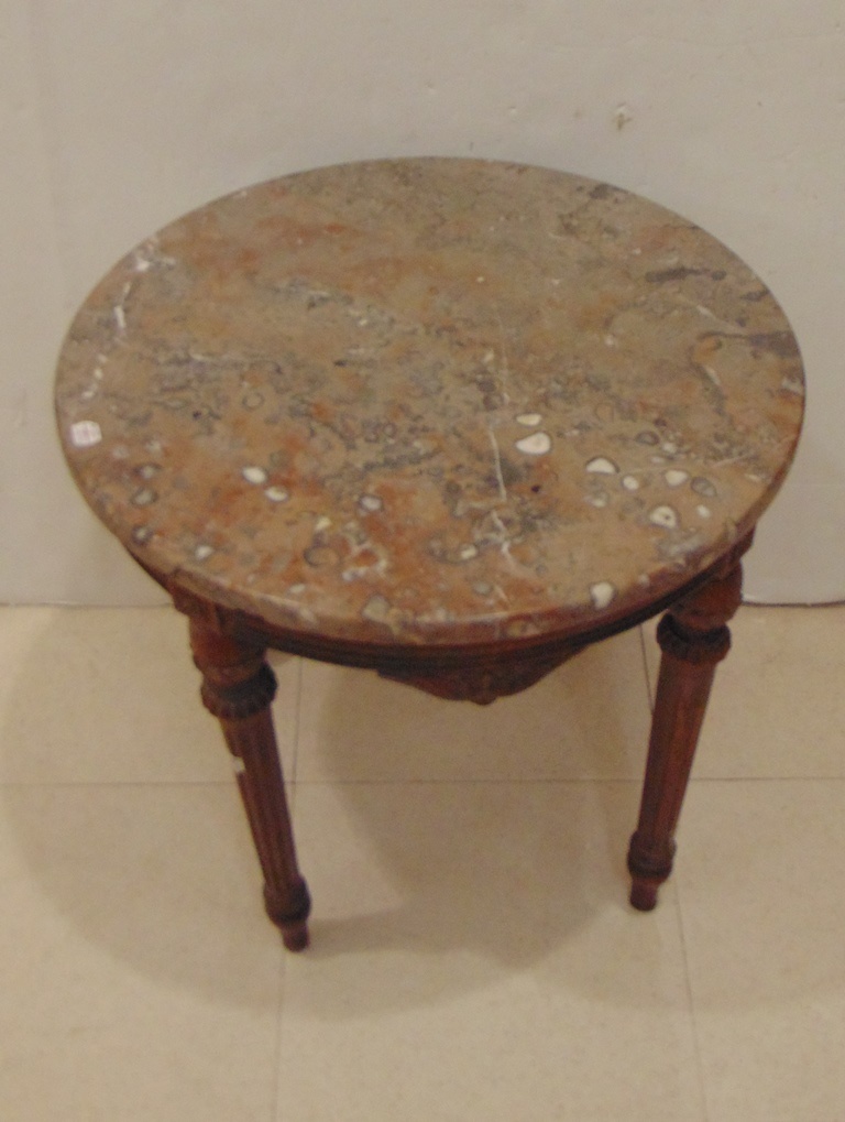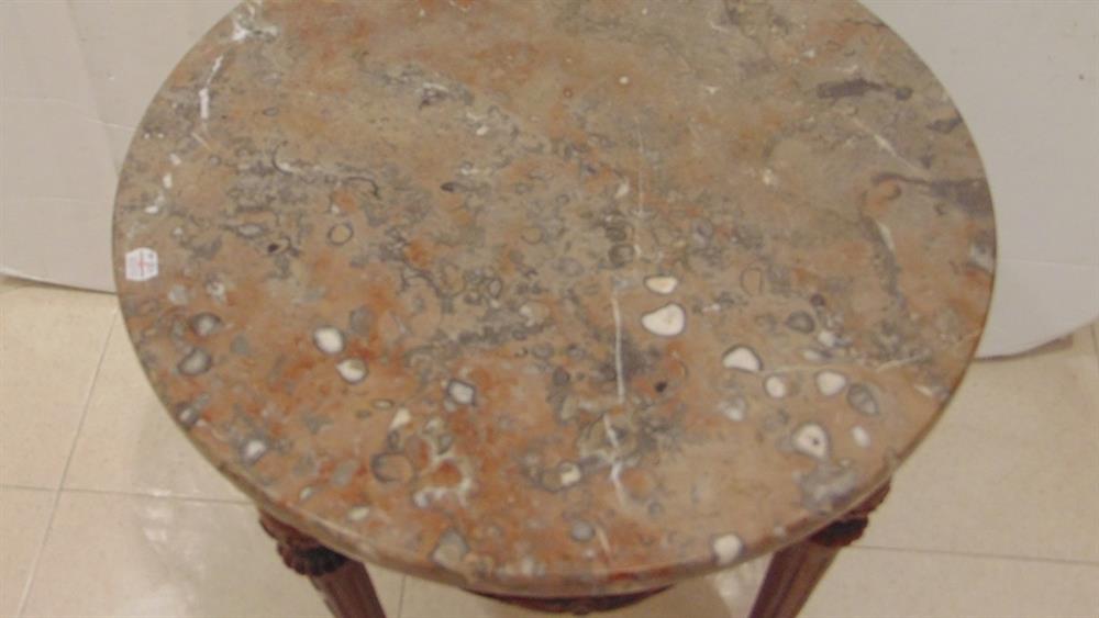 LOUIS XVI STYLE STAND WITH CIRCULAR MOTTLED MARBLE TOP. - H: 18 1/2 in.; Top, D: 19 1/2 in.