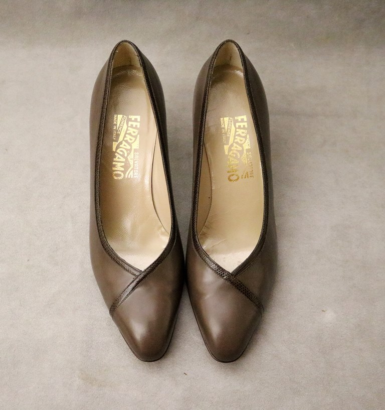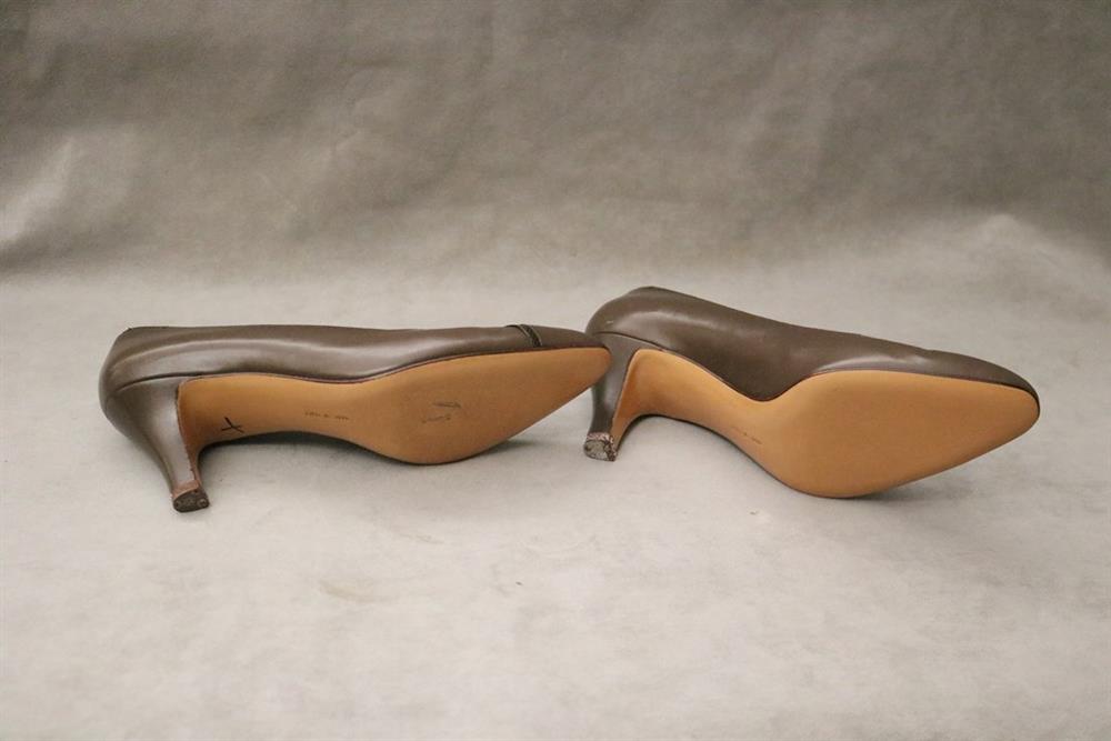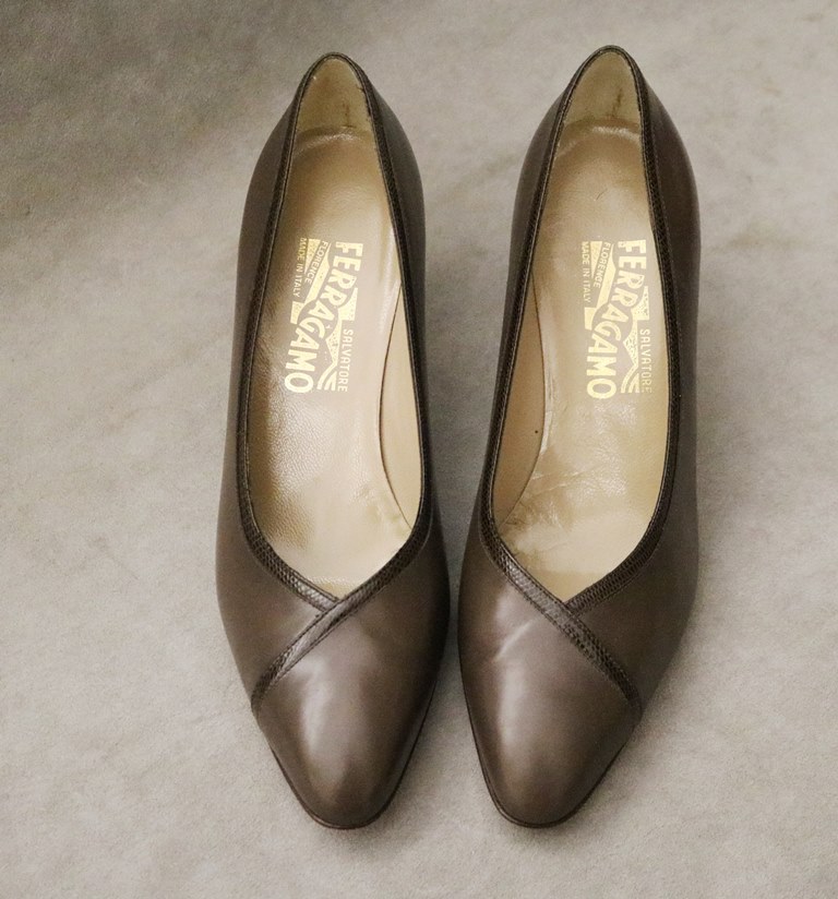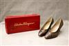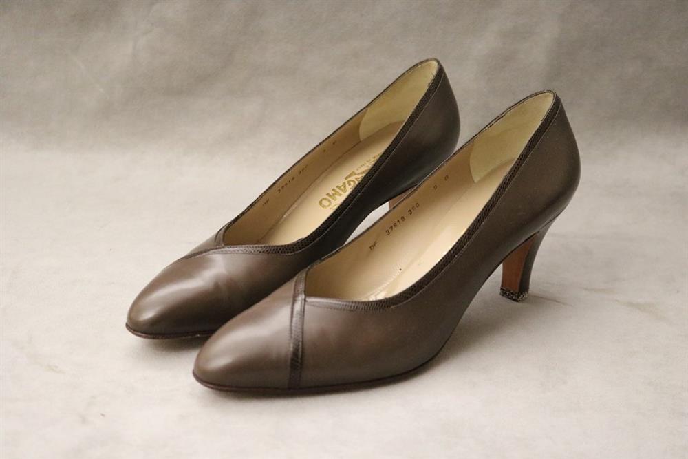 PAIR LADY'S SALVATORE FERRAGAMO BROWN PUMPS OR HIGH HEEL SHOES, SIZE 9B. With original boxEstimate $50-100