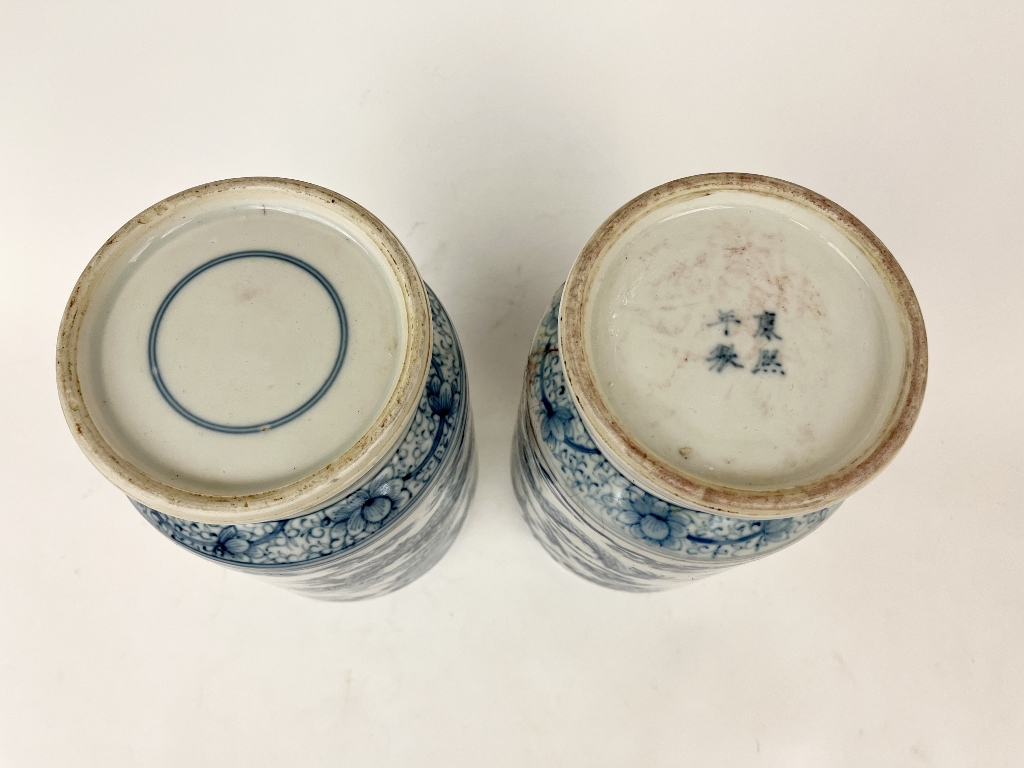 PAIR OF CHINESE BLUE AND WHITE PORCELAIN BALUSTER FORM VASES. Writhing dragon decoration. - H: 13 3/4".Estimate $200-300