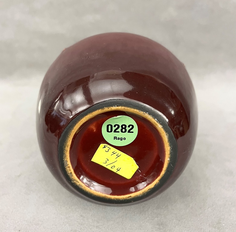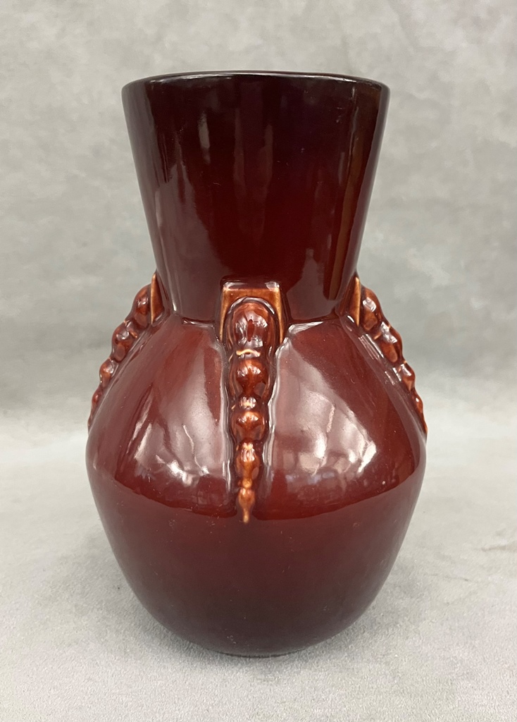 ROSEVILLE POTTERY TOPEO MOWA ART POTTERY VASE IN OXBLOOD RED, 698-7. - H: 7 1/4 in.Estimate $200-300