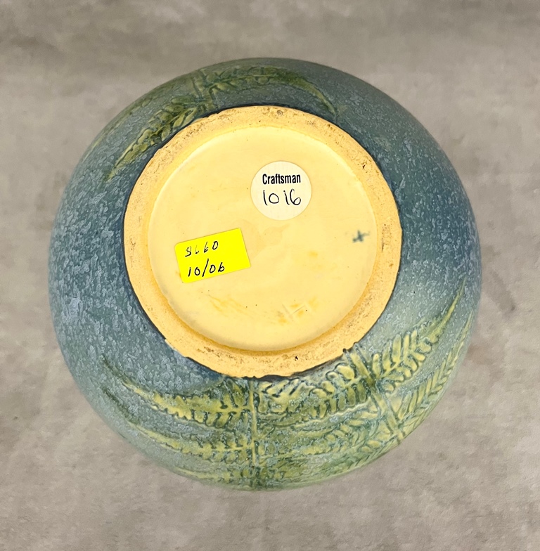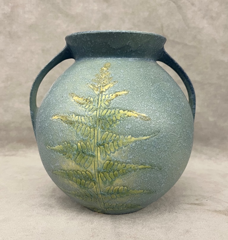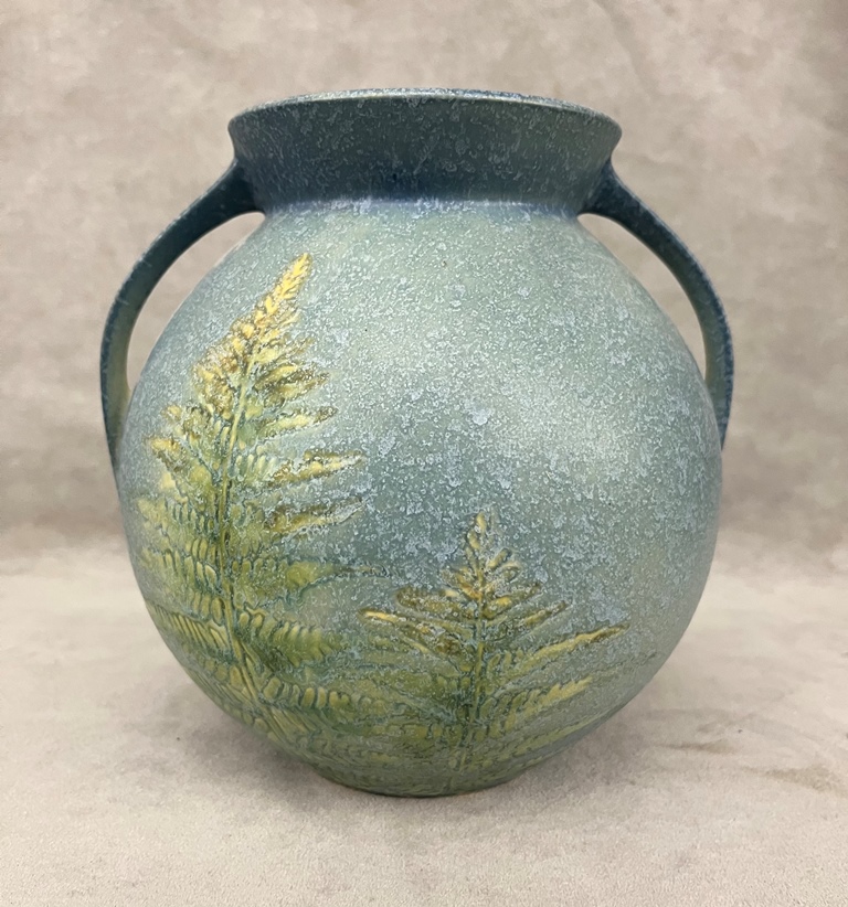 ROSEVILLE POTTERY WINDSOR VASE WITH FERN MOTIF ART POTTERY VASE, 551-7. Literature: Roseville in All its Splendor with Price Guide, Bomm, pg. 368 - H: 7 1/2 in.Estimate $400-600