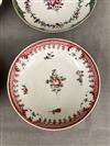 SIX PIECES 18TH CENTURY CHINESE EXPORT PORCELAIN . Including two handleless tea bowls, one with armorial decoration and other with floral motifs, and two saucers; two miscellaneous saucers, one with sepia river landscape scene, D: 5 1/2 in. Estimate $75-125 Imperfections