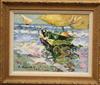 SPANISH SCHOOL (20th century). The Green Boat, 1994, Oil on canvas. Indecipherable signature and dated lower right hand corner. Framed. - Sight (approx.): 13 x 10 inches (excluding frame)Estimate $150-250