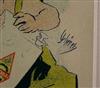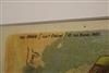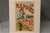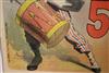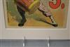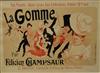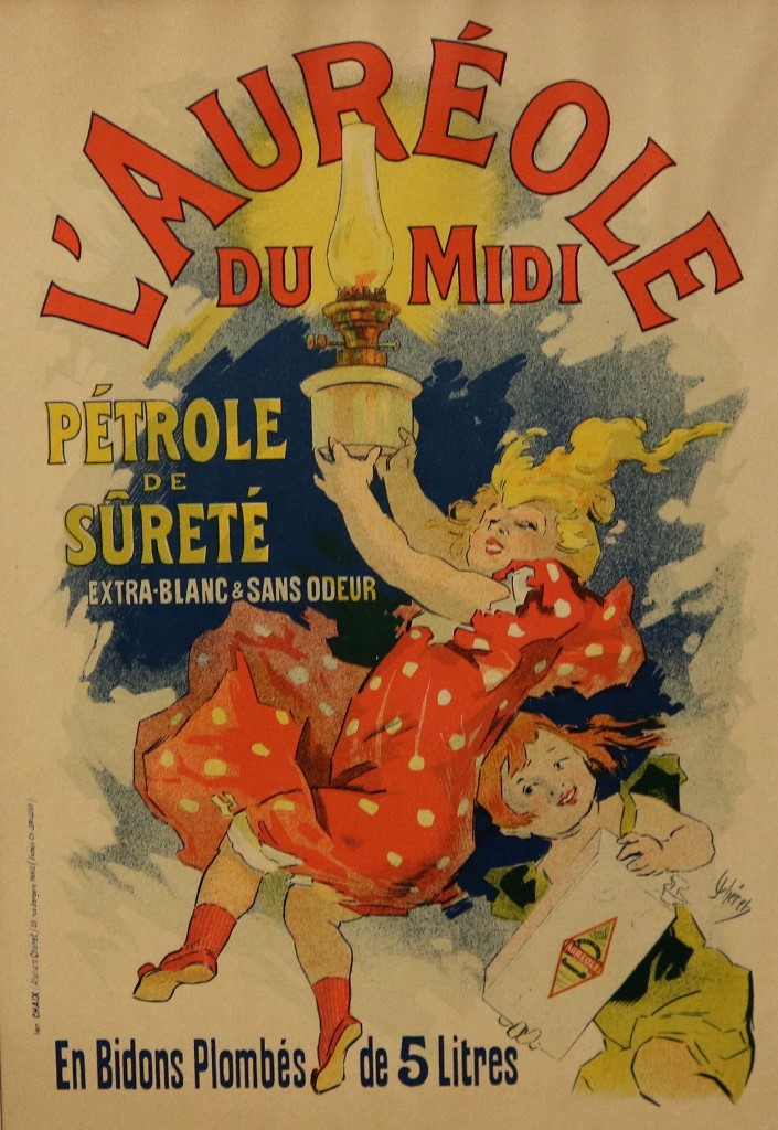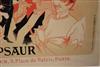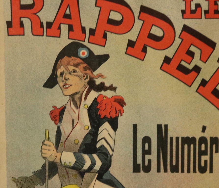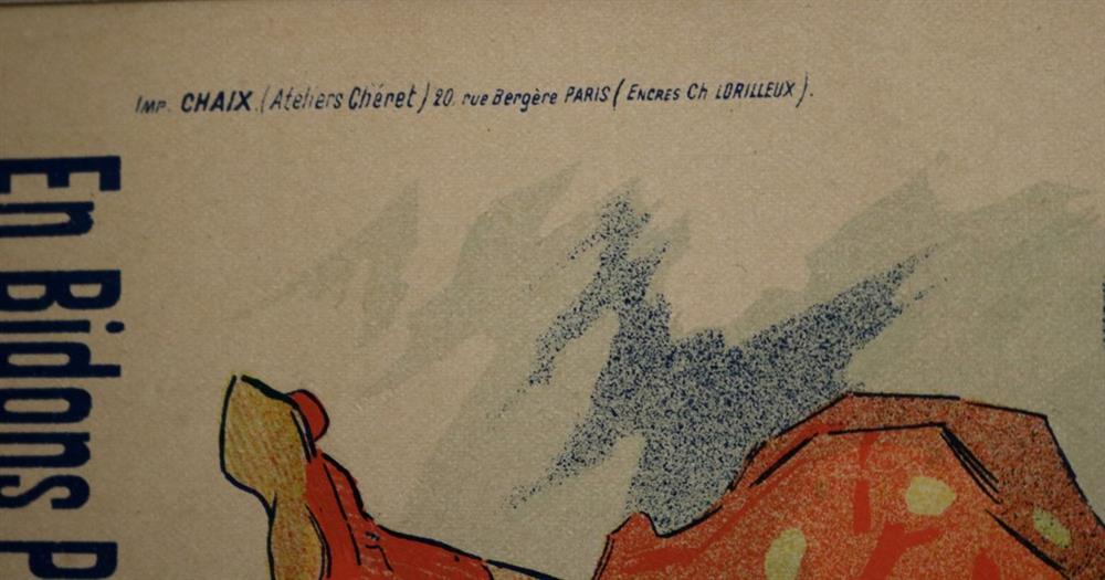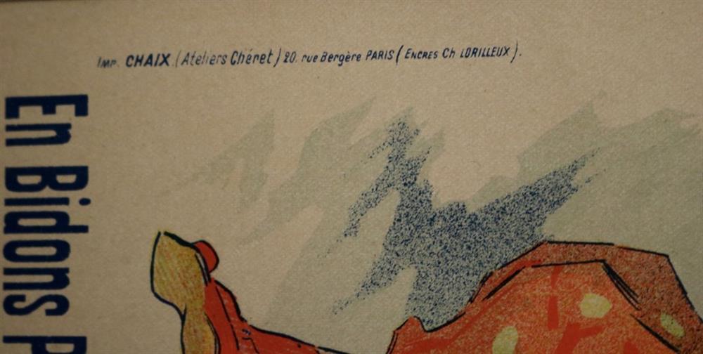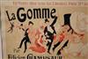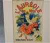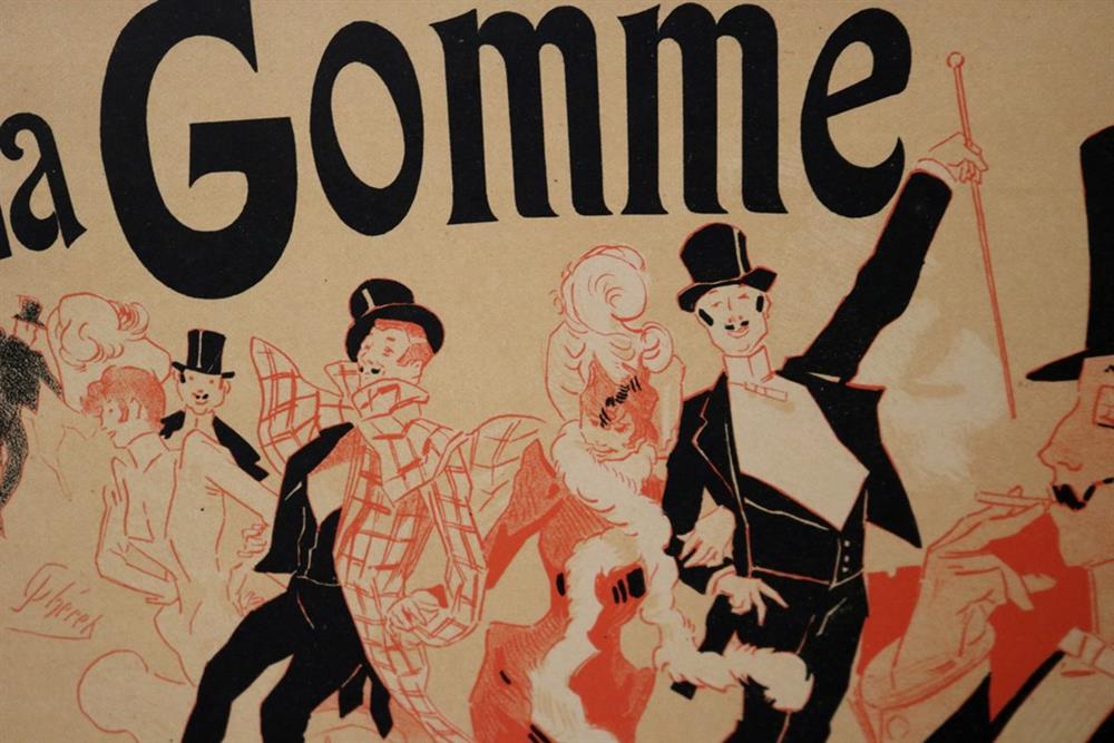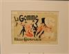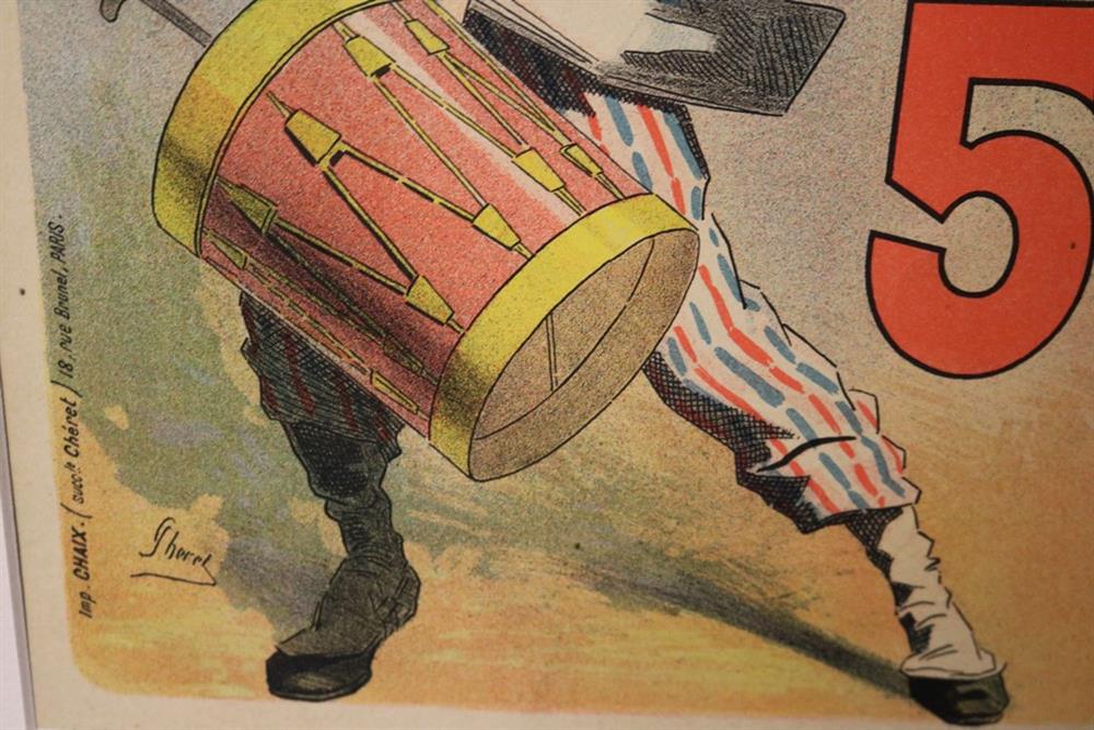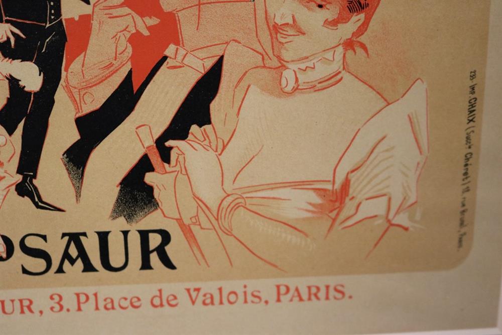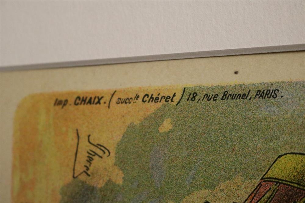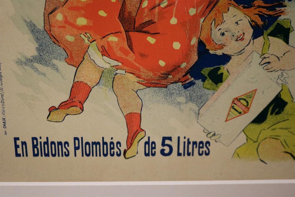 THREE SMALL-SCALE FRENCH LITHOGRAPHIC POSTERS, 19TH / 20TH century. Set of these three French small-scale posters, dating from the late 19th or early 20th century, exhibit the diverse subject matter and expressive style of Belle Époque advertising. The poster on the left promotes "L'AURÉOLE DU MIDI PÉTROLE DE SÛRETÉ" (safety kerosene), featuring a striking image of a blonde woman in a red polka-dot dress holding aloft a brightly lit kerosene lamp, illuminating a child below, emphasizing the product's safety and light quality. The middle poster advertises a publication called "LE RAPPEL," with the phrase "En Vente Partout Le Numéro 5 C" (On sale everywhere, the issue is 5 centimes), showcasing a dramatically posed figure-possibly a newsboy or street crier-beating a large drum to draw attention. The poster on the right, advertising "LA GOMME" by Félicien Champsaur, likely a book or literary work, features a lively, humorous, and somewhat grotesque scene of figures in fashionable and exaggerated attire dancing or socializing, rendered in the distinctive Art Nouveau style of the time, priced at "PRIX 3 FR. 50." Note: Unframed. None of the posters are laid down. All are mated. - various mat openings; approx: 9 x 12 inches; mat: 14 x 18 inches. Estimate $200-250