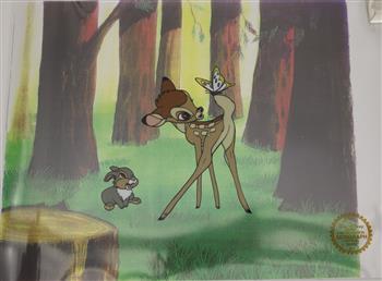 THREE WALT DISNEY COMPANY LIMITED EDITION SERIGRAPH ANIMATION CELS. Cels of Bambi Thumper, Lady and the Tramp, and Snow White and the Seven Dwarfs. The cels include a color background (which is not attached to the cel). Unframed. . Estimate $120-220