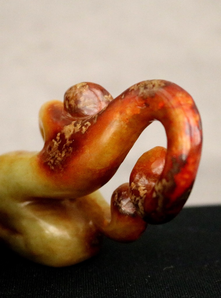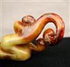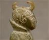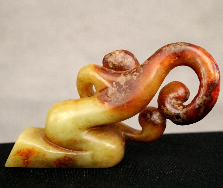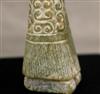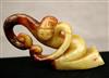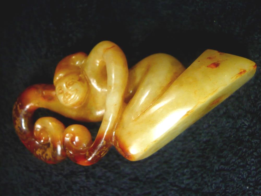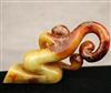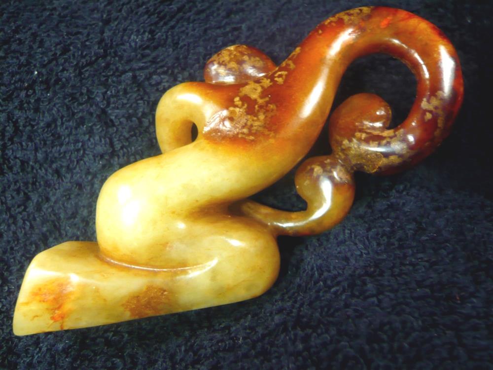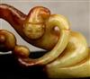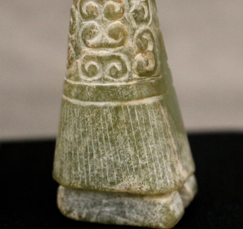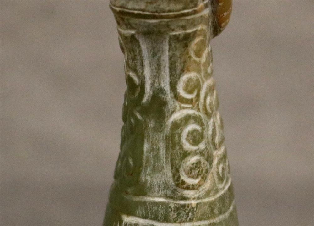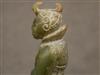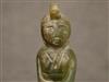 TWO CHINESE HAN DYNASTY FIGURINES. Two patinated and incised figurines as follows (1) a light green jade standing female figure. Han dynasty. Height: 13 cm, 5 2/16 inches; and (2) a light green and russet jade figure of a dancer. Han dynasty. Length: 10 cm, 4 inches. Note: The Han dynasty was a Chinese imperial dynasty that ruled from 206 BCE to 220 CE. NOTE: A copy of the consignor's purchase receipt will be provided upon request. Estimate $400-600 PROVENANCE: Acquired in the early 1990s from Frank H. Crane's "The Hundred Antiques" store (Stirling, Ontario, Canada). Mr. Crane was a frequent visitor to Hong Kong where he acquired Archaic jades mainly from Mr. Lai Loy's well known and prominent shop near the Man Mo Temple on Hollywood Road. Mr. Lai (Chinese, 1926-2012) was the descendent of antique dealers from Guangzhou, China. In 2005, stones from the collection were verbally authenticated by Dr. Sarah Milledge Nelson (American, 1931 - 2020), a noted archaeologist and Distinguished Professor Emerita from the Department of Anthropology, University of Denver.