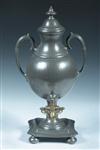 Sale 75 Lot 640 ENGLISH PEWTER HOT WATER URN, R. Richardson, Sheffield, 19th century. Touchmark - 18 1/4 in. high. Estimate $400-700 See "Pewter Wares from Sheffield" by Jack Scott, p. 244, mark 387 Unsold