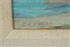AUGUST HERMAN OLSON ROLLE. (Minnesota/Washington, D.C., 1975-191). FISHERMEN, NET, REEL AND SKIFF, stamped signature lower left and signed and estate stamped on verso. Circa 1920-192. Oil on board.