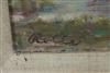 See Mr. Fastov's extended supplementary text here, which he had originally intended to be used solely as a prefatory essay for all of the Rolle works of art, that he prepared, without assistance/supervision/ editing/proofing from Sloans & Kenyon, specifically for this auction of a very large collection and smorgasbord of a wide variety of beautiful Impressionist landscapes by August Herman Olson Rolle (`Washington, D.C. 1875-1941). Such essay contains detailed Rolle biographical information and an extensive analysis of why Rolle is properly regarded as the leading Washington, DC Impressionist landscape painter of the early 20th century. This is predicated initially on the fact that Rolle and Benson Bond Moore were the only 2 D.C. Impressionist artists and 2 of only 12 Southern Impressionists selected by Professor William Gerdts, for inclusion in his very popular, scholarly, well-written, trailblazing book American Impressionism, published in 1984, which is still in print and selling well, and Rolle's unsurpassed Impressionist brushwork and freely imaginative coloring; diverse landscape subjects and compositions; his impeccable and highly sensitive depictions of the impact of light, shadow and weather of the 4 seasons on different kinds of water, land, buildings, trees, etc.; and other artistic components of his style, that he produced continuously throughout his life in the Impressionist style from c. 1905-1941 in the Potomac River Valley, the Washington, D.C. area and other locales. Mr. Fastov also discusses the high respect in which he was held by D.C. art community, as evidenced by his election and long time service as President of 2 of the 3 leading D.C. art organizations of the early 20th century, The Landscape Club of Washington, D.C. (1919-1932, except 1925) and the Washington Watercolor Club (1930-1937). Finally, Mr. Fastov discusses the economic value of Rolle's art. - framed, 7 in. x 9 in.