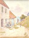 DAVID SMALL (British, 1846-1927). THE ROAD TO THE HARBOUR, signed "D Small" and titled lower left. Watercolor on board - Sight: 13 in. x 10 1/4 in.