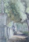 C.M. VAREZ (French, 20th century). GARDEN WALK, signed lower left. Watercolor and charcoal on paper - Framed, sight: 13 3/4 in. x 9 3/4 in. Estimate $250-350 PROVENANCE: Estate of Suzanne S. Holcomb, Washington, DC
