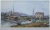 JOHN STOBART (English/American, b. 1929). RING'S END LANDING, DARIEN, 1900, signed and numbered 182/250 lower right. Color lithograph - Framed, image: 17 in. x 30 in. Estimate $400-500