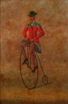 AMERICAN SCHOOL (20th century). RUDGE BICYCLE 1884, inscribed " "Rudge" Bicycle 1884. Direct driven high machine. Used in many races by Osmond. Oil on panel C - Framed, 14 in. x 9 1/2 in. Estimate $200-400