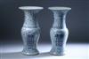 NEAR PAIR CHINESE BLUE AND WHITE PORCELAIN YEN-YEN VASES.Chenghua four-character underglazed blue mark. Painted with "xi" (double happiness) characters and scrolling foliage decoration. Together with a jar and cover with similar decoration - each: 15 3/4 in. high.