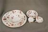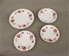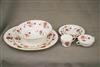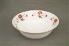122-PIECE SERVICE ROYAL CROWN DERBY "BALI" PATTERN BONE CHINA TABLEWARE. Including 16 dinner plates, 17 salad/dessert, 17 bread bread-and-butter plates, 17 berry bowls, 14 tea/coffee cups with 8 saucers, 18 two-handle bouillon bowls with 16 saucers, two open oval vegetable dishes, circular serving bowl, L: 10 1/4 in.; two circular platters, D: 12 1/4 in.; and oval platter, L: 16 7/8 in. $400-600