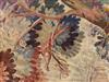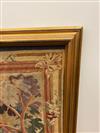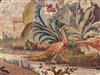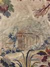 18TH-19TH CENTURY CONTINENTAL TAPESTRY DEPICTING PHEASANTS ALONGSIDE BLOSSOMING TREE ON RIVER BANK. With gazebo and stately manor in background. - Framed. Sight size: app. 64 in. x 48 in.Estimate $200-400