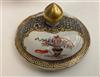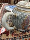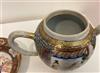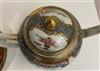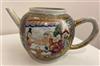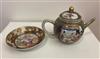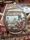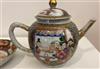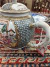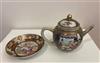 18TH CENTURY CHINESE POLYCHROMED TEAPOT AND SAUCER. Polychromed dragon decorated apple form porcelain teapot and saucer.Estimate $250-350