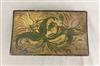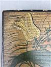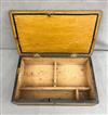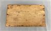 19TH CENTURY PENNSYLVANIA PINE TRAVELING WRITING BOX. Original mustard color ground; lid painted with pink and yellow tulips having exuberant green foliage. - Height: 3 3/4". Top, 12 x 7 1/4".