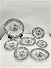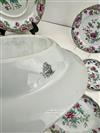 48 PIECE SERVICE 19TH CENTURY SPODE "PEONY" DESIGN TRANSFER-PRINTED IRON STONE TABLEWARE. Including; 15 plates (9 1/2"), 6 plates (8".), 7 plates (7"). 5 soup bowls, (9 3/4"), 9 soup bowls (8 1/4"), 5 rectangular platters, largest, L: 13 1/2"; under tray for tureen, D: 13 3/4". Estimate $350-500
