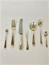 71-PIECE PARTIAL SERVICE GORHAM CO. "DOLLY MADISON" PATTERN STERLING SILVER FLATWARE, ALL PIECES ENGRAVED WITH DEMIHIND MOTIF FROM MENCKEN FAMILY. Retailed by Hennegan-Bates, Baltimore. Including 12 dinner knives, L: 9 5/8"; 10 dinner forks, L: 7 7/8"; 12 cream soup spoons, 10 iced tea spoons, 12 demitasse spoons, 9 seafood forks, and 6 flat-handle butter knives. - Wt.: 65.4 troy oz. (excluding knives). Estimate $900-1,200 PROVENANCE: This silver was presented to journalist and Baltimore Sunday Sun editor H.L. Mencken at the time of his 1930 marriage to Sara Haardt, a German-American novelist and professor, by the A.S. Abell Co. President and publisher of The Baltimore Sun newspapers. It descended to Mencken's brother August, then to William Schmick Sr., the publisher of Baltimore Sun at the time, and then by descent through the Schmick family. See the Mencken family crest can viewed here: https://www.my-coat-of-arms.com/cgi-bin/search.cgi?Surname=Mencken