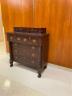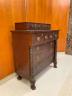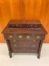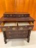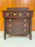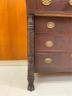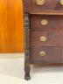 AMERICAN EMPIRE MAHOGANY SEVEN-DRAWER CHEST Rectangular top supports two aligned glove drawers; lower case with two half-width drawers projecting over three full-width drawers; oval brass pulls; carved side columns; lion paw feet H: 45 in. W: 40 1/2 in. D: 19 1/2 in. $300-400