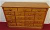 AMERICAN GOLDEN OAK 19-DRAWER APOTHECARY CHEST, 19th century. " 1 - H: 36 in.; W: 49 3/8 in.; D: 12 1/4 in.Estimate $150-250