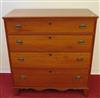 AMERICAN HEPPLEWHITE CHERRYWOOD FOUR-DRAWER CHEST, 19th century. Four graduated full-width drawers over shaped apron. - H: 41 in. W: 38 1/2 in.; D: 18 in.Estimate $250-400