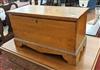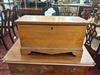 AMERICAN MAPLE DOLL-SCALE HINGE-TOP BLANKET CHEST. Banded edge; shaped apron and straight bracket feet. H: 12 3/4 in. W: 23 in.; D; 11 in.Estimate $150-250