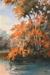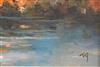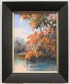 AMERICAN SCHOOL (20th Century). Fall Landscape, Oil on board. Signed either "MJ or "WJ" lower right hand corner. Framed. - 11.5" x 9"; Frame 16" x 13.5"Estimate $300-400