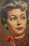 AMERICAN SCHOOL (20th century). CAROLE MATHEWS FROM GIRL OF SUMMER, 1995, Inscribed by sitter. Oil on board. Framed. - 28" x 16.5"; Frame: 30.5" x 19.5" Estimate $120-160 Carole Mathews starred with Mike Conners in the films "Girl of Summer" and "Swamp Women."