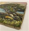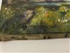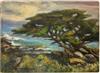 AMERICAN SCHOOL (early 20th Century). Seascape With Windblown Cypress On California Coast, circa 1925, Oil on canvas. Indecipherable signature at lower left hand corner. Possibly signed as "E. Gray Horan" and dated 1925. Verso indecipherable inscription and dated 1925. Framed (not engaged). - 8 x 11 in; frame: 10 x 13 in Estimate $400-600
