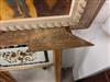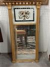 AMERICAN SHERATON GILT-WOOD PIER MIRROR. early 19th century, Architectural pediment with applied gold spherules over eglomise panel depicting flowering urn; sides of frame have beaded decoration; original glass. - H: 30". Estimate $200-300