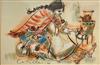 ARGENTINE SCHOOL (20th Century). Lady Drinking Mate, 1974, Watercolor and gouache on paper. With an undeciphrable ink signature lower left corner. Framed. Not examined out of frame. - 12 x 18 in; frame: 18 x 24 inEstimate $150-250