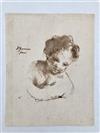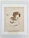 ATTRIBUTED TO GIOVANNI FRANCESCO BARBIERI, BETTER KNOWN AS GUERCINO (Italian, 1591 - 1666). Study of a Child, Pen and dark brown ink, brush with brown wash. With an inscription "Il Guercino fece" upper left. There is a collector's mark embossed in the upper right hand corner. Unframed. - Sheet: 9 x 7 in. Estimate $600-800