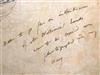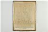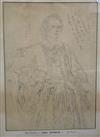 ATTRIBUTED TO ROSA MARIE ROSALIE BONHEUR. (French, 1822 - 1899). Pencil Portrait of Rosa Bonheur by Herself, Pencil drawing after Bonheur's portrait next to a bull done by portrait artist Edouard Louis Dubufe (French, 1819 - 1883). With an unrelated ink annotation (top right hand corner). Framed. Not examined out of frame. - 17.5" x 12"; Frame: 21" x 16" Estimate $500-800