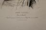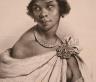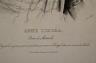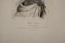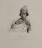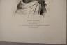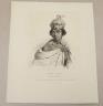 ACHILLE-JACQUES-JEAN-MARIE DEVERIA (AFTER) French, 1800 - 1857 Ann Zingha, Queen of Matamba (present-day Angola), early 19th century Engraving, titled Ann Zingha, Queen of Matamba, is a 19th-century lithograph by François Le Villain based on an earlier illustration by the French artist Achille Deveria. It depicts Queen Nzinga Mbande (c. 1583–1663), the formidable 17th-century monarch of the Ndongo and Matamba kingdoms in present-day Angola, who is celebrated for her lifelong resistance against Portuguese colonial expansion. Deveria’s 1830s rendering was based on a portrait found in a Portuguese convent, reimagining the queen through a European Romantic lens while acknowledging her status as a sovereign. The image captures her in a moment of royal dignity, reflecting her historical reputation as a brilliant military strategist and diplomat who famously asserted her equality with European governors—most notably in the legendary 1622 negotiation where she used a servant as a chair to avoid sitting on the floor before the Portuguese representative. It is neither mounted or framed. Sheet: 16 x 13.5 inches; image: 12 x 9 inches $100-120