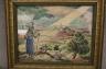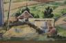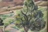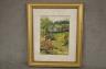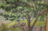 (2) Barbara Meade Piegari (20th Century), Garden with large Tree. Oil on canvas. Signed lower left. Size: 9.5 x 8 inches (excluding frame) (3) American School watercolor signed "Norman" lower right. Landscape with a Red Barn. Framed. Size (as matted) 7 x 5 inches (excluding frame).