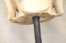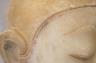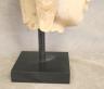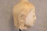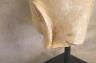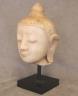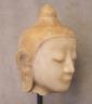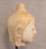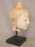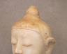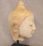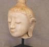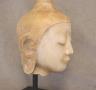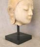 BURMESE MANDALAY ALABASTER MARBLE BUDDHA HEAD Sculptural fragment carved in classic Mandalay style. Mounted on square black metal display stand. H: 13 1/2 in. (head only); 19 in. including base. $1,000-1,500