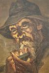 CARIBBEAN SCHOOL (20th Century). The Smoker, Oil on canvas. Signed lower right hand corner. Possibly signed as YEP. Framed. - 13" x 9"; Frame 20.5" x 16.5"Estimate $200-300