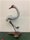CARVED AND PAINTED WOODEN FIGURE OF WHOOPING CRANE ON LOG SECTION. Glass eye; realistically crafted H: 19 in. Property from the Estate of Erich G. Holzapfel, Washington, DCEstimate $100-150