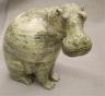 THREE CARVED STONE FIGURE OF HIPPOPOTAMUSESIncluding pair seated, H: 7 3/4", and single reclining, L: 12 1/2". Mottled and striated green stone.$200-300