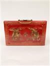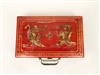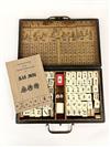 CHINESE BAMBOO AND BONE MAHJONG SET IN GILT DRAGON DECORATED RED CASE. Case, 12 1/2" x 7 7/8"Estimate $50-100