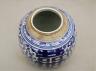 CHINESE BLUE AND WHITE CERAMIC GINGER JAR 19th century Character symbols amidst leaf arabesques $100-150