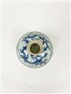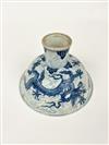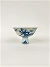 CHINESE BLUE AND WHITE PORCELAIN STEM CUP. Exterior with decoration of five-toed writhing dragons; interior with six-character mark within reserve. - D: 6 1/8".Estimate $100-200