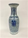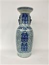 CHINESE BLUE AND WHITE PORCELAIN TWO-HANDLE BALUSTER-FORM VASE. Character motifs centered by trailing, scrolling vines. H> 23 1/4 in.Estimate $150-250