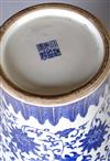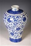 CHINESE BLUE AND WHITE PORCELAIN VASE. Overall with trailing floral decoration; square reign mark under foot. - H: 14 in.Estimate $100-200